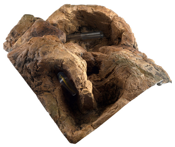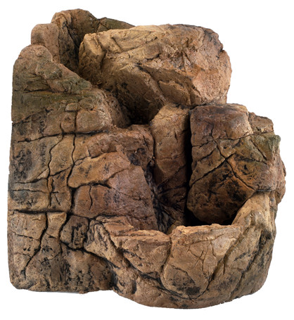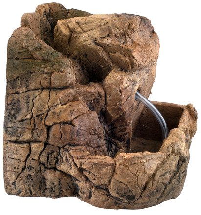 ATG-Line Ekol műszikla csobogó terráriumba. Élethű kialakítású és színű műszikla dekoráció, hangulatos kiegészítő. A vízcsobogás nem csak a látványvilágában nyújt extrát, de a hüllők közérzetét is javítja: növeli a terrárium páratartalmát, és folyamatosan friss ivóvizet biztosít számukra. Könnyen elhelyezhető a terrárium sarkában. A csobogó alsó, fedett üregében kis szivattyú helyezhető el, mely egy rejtett gumicsövön keresztül juttathatja a vizet a műszikla tetejére. A termék vízpumpát nem tartalmaz!