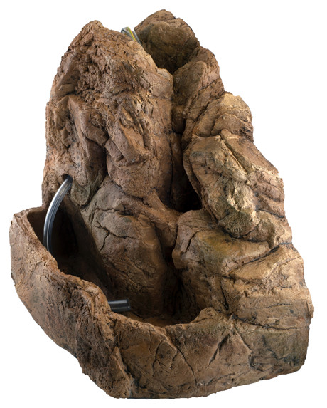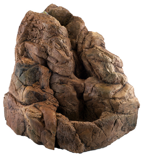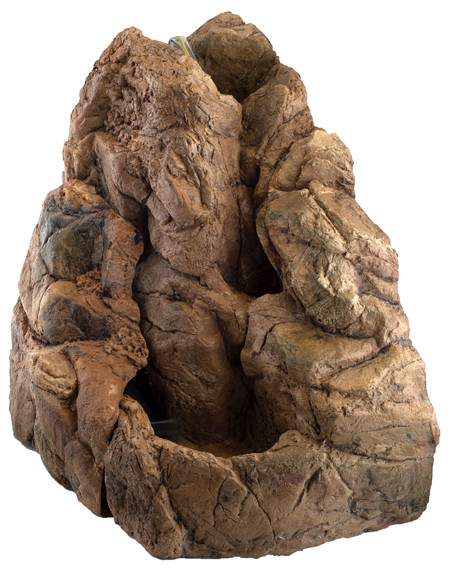 ATG-Line Ekol műszikla csobogó terráriumba. Élethű kialakítású és színű műszikla dekoráció, hangulatos kiegészítő. A vízcsobogás nem csak a látványvilágában nyújt extrát, de a hüllők közérzetét is javítja: növeli a terrárium páratartalmát, és folyamatosan friss ivóvizet biztosít számukra. Könnyen elhelyezhető a terrárium sarkában. A csobogó alsó, fedett üregében kis szivattyú helyezhető el, mely egy rejtett gumicsövön keresztül juttathatja a vizet a műszikla tetejére. A termék vízpumpát nem tartalmaz!