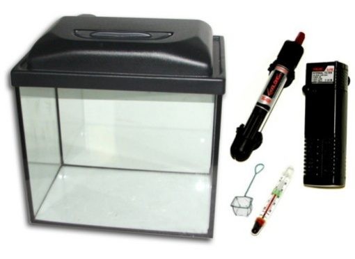 Komplett akvárium szett, minden szükséges felszereléssel. Az akváriumra tökéletesen illeszkedő fekete műanyag tető beépített világítással rendelkezik. A szetthez járó szűrő és fűtő berendezés hatékonyan látja el az akváriumot. Hőmérővel és hálóval a mindennapi használati megkönnyítéséhez.