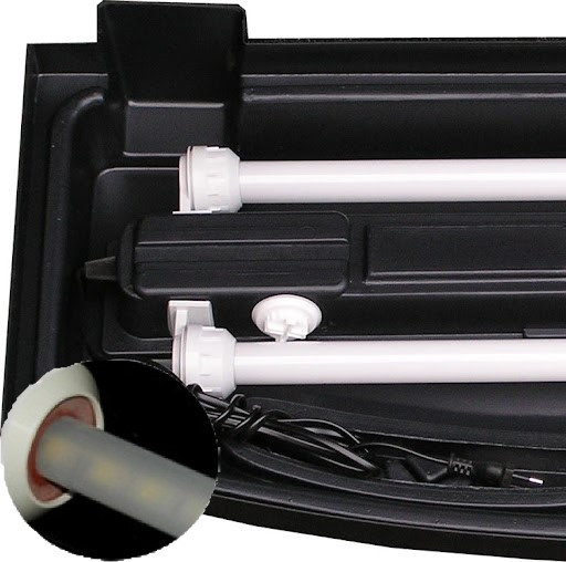 Wiwal dekoratív akvárium tető, beépített T8 LED fénycsöves világítása ideális fényviszonyokat biztosít az akváriumban. Pára- és cseppálló (IP68), teljesen biztonságos rendszer. Masszív műanyag tető, csökkenti a kipárolgást, megakadályozza a díszhalak kiugrását. Fedeles etetőnyílás, és hátsó kivezetőnyílás a csöveknek, vezetékeknek.