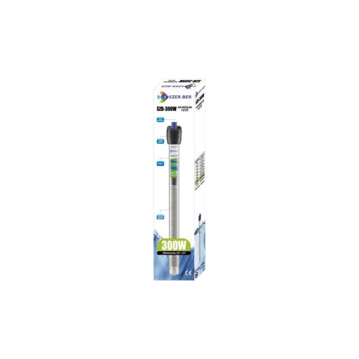 SZER-BER hőfokszabályzós akvárium fűtő. Üveg burkolatos fűtőrúd, mely megbízhatóan biztosítja akváriumunk számára az ideális hőfokot. A fűtő tetején lévő tekerőszabályozóval könnyen beállítható a vízhőmérséklet a hőfokskála segítségével. Teljesen vízhatlan, dupla szigeteléssel ellátott, biztonságos eszköz. A jól látható LED indikátor által mindig látjuk, mikor üzemel épp a fűtő. A hőfokszabályozás 20-32°C között állítható, az eszköz +/-1 °C pontossággal dolgozik. Teljesítmény 300W, 200-300 literes akváriumba ajánlott.