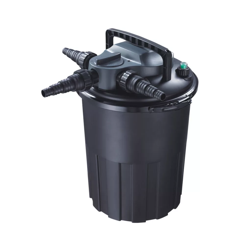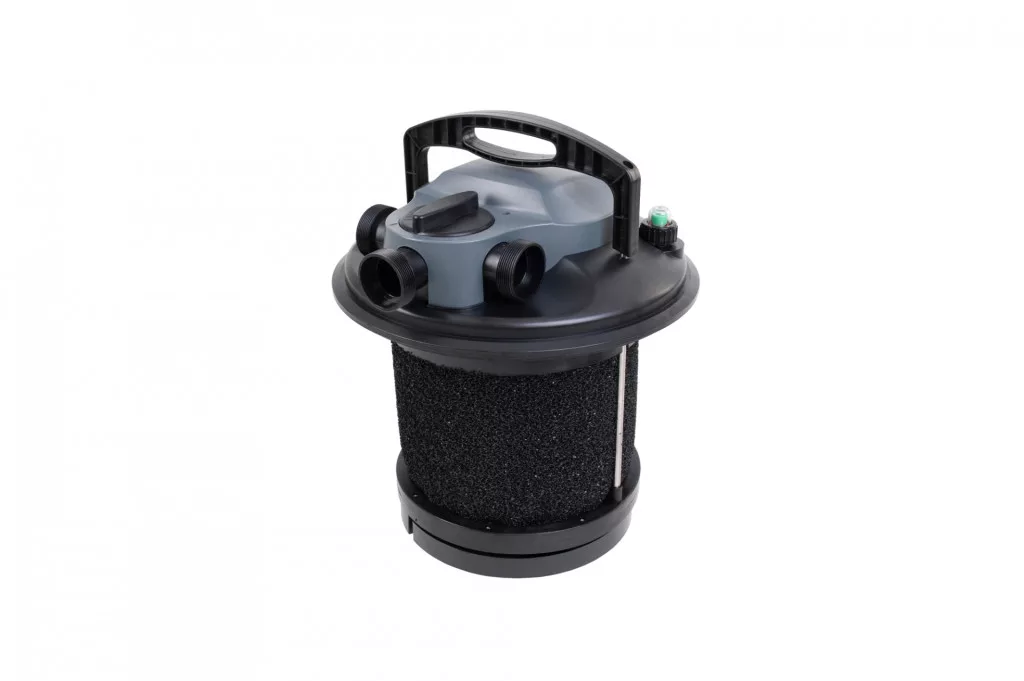 A szűrő háromlépcsős tisztítási rendszere gondoskodik a tiszta és egészséges tóvízről. A mechanikai szűrést nagyméretű szűrőszivacs végzi, a biológiai szűrést speciális műanyag szűrőközeg segíti, míg a beépített UV-C sterilizátor hatékonyan csökkenti az algásodást. A szűrő telítettsége a beépített nyomásindikátor segítségével könnyen ellenőrizhető.