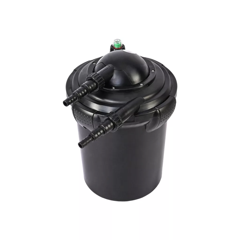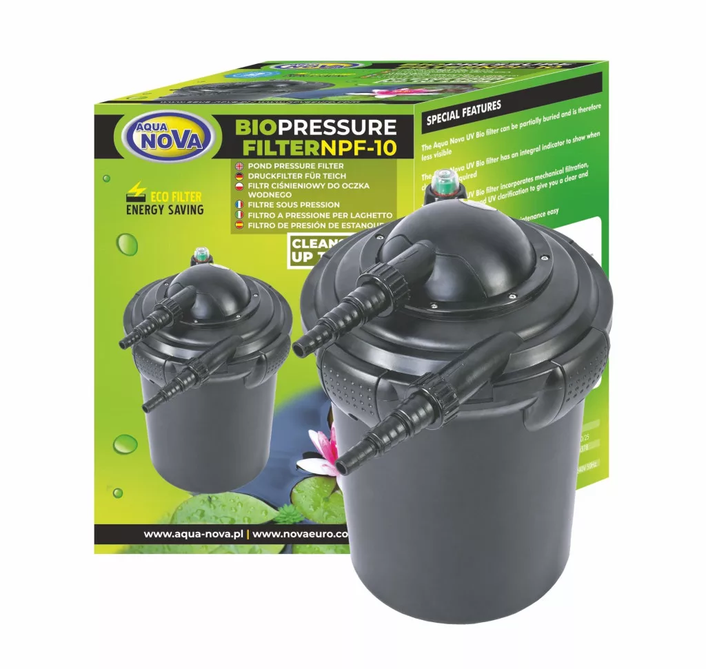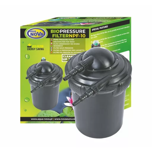 Az Aqua Nova NPF nyomásszűrő hatékony megoldást kínál kisebb kerti tavak vízminőségének fenntartására. A hermetikusan zárt, nyomásálló rendszer stabil működést biztosít, miközben lehetővé teszi, hogy a szűrt vizet ne csak közvetlenül a tóba, hanem például csobogóhoz vagy vízeséshez is továbbvezesd.