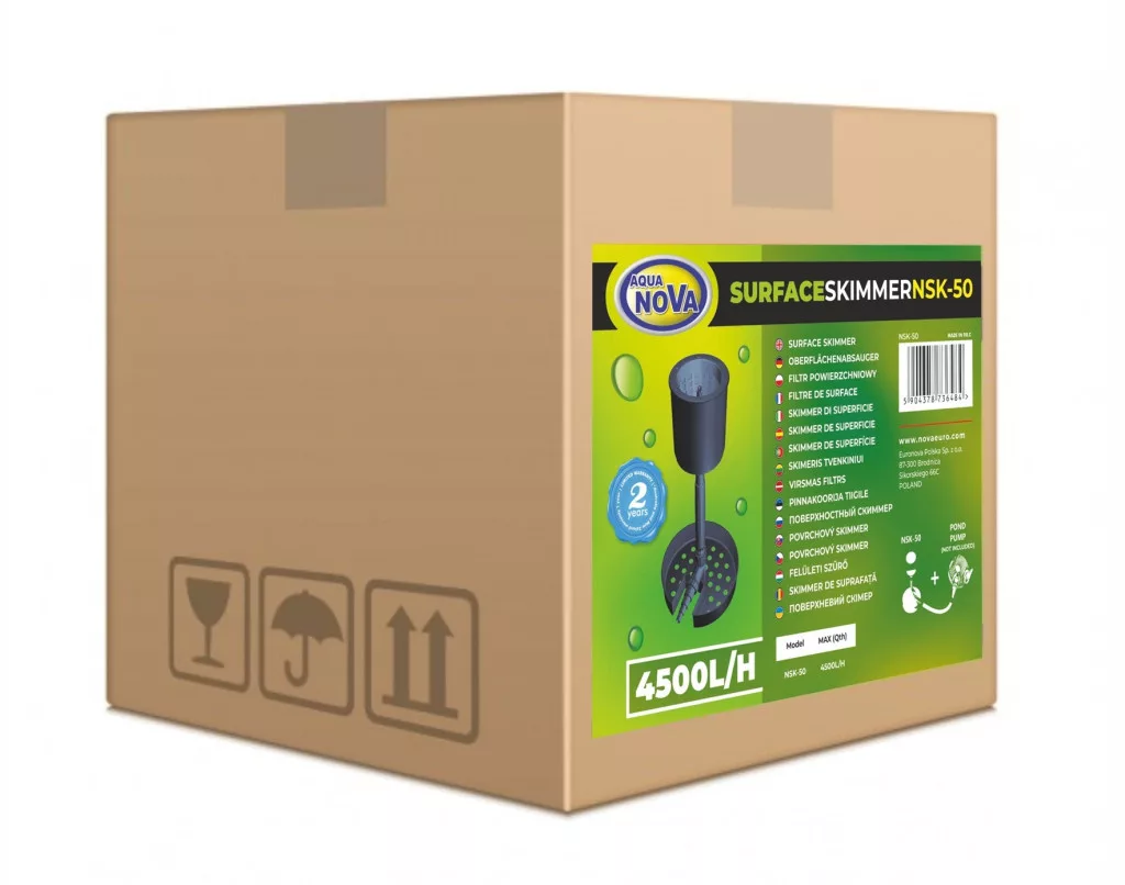 Az Aqua Nova NSK vízfelszín szűrő (skimmer) hatékony megoldást kínál a kerti tavak vízfelszínének tisztán tartására. A készülék eltávolítja a víz tetején úszó szennyeződéseket – például leveleket, virágport vagy békalencsét – még mielőtt azok lesüllyednének a tó aljára és rontanák a víz minőségét.