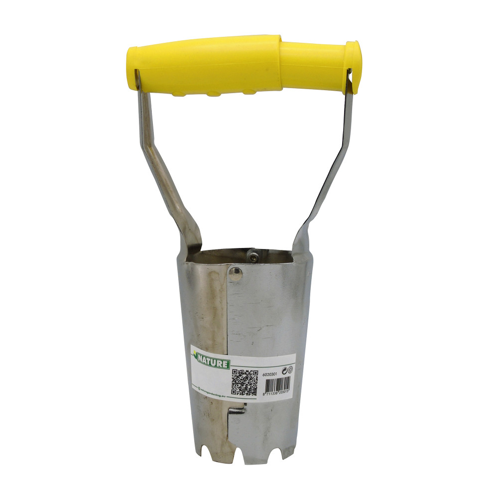 - A nyomógombos, ergonomikus markolattal a tölcsér szétnyitható, hogy a föld kicsusszanjon.