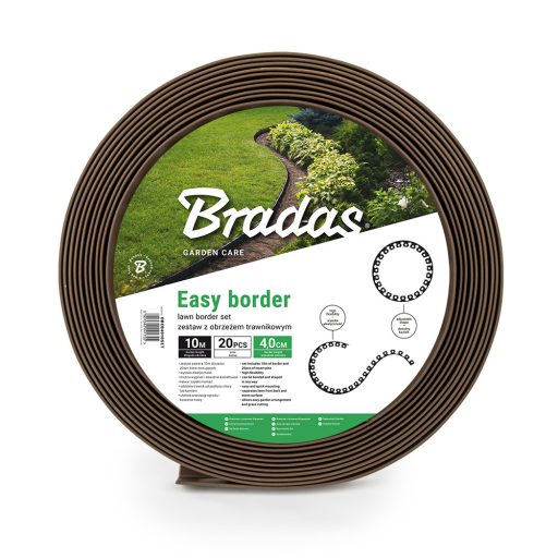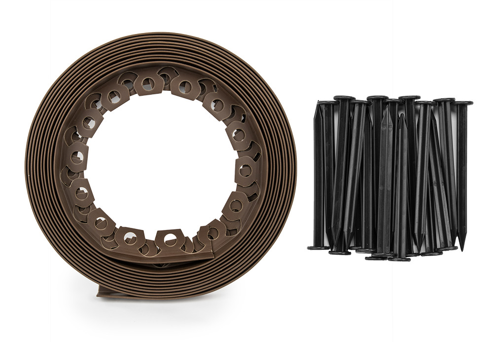 Gyepszegély készlet: EASY BORDER 40mm*10 m barna színű tekercs + 20 db leszúró tüske