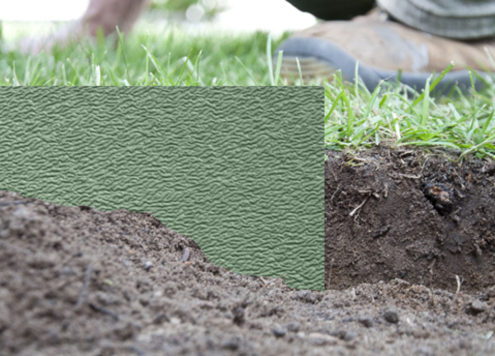 Zöld, műanyag gyep- és ágyásszegély mely alkalmas a gyep, növények, utak, parkok és kertek határának elszigetelésére.