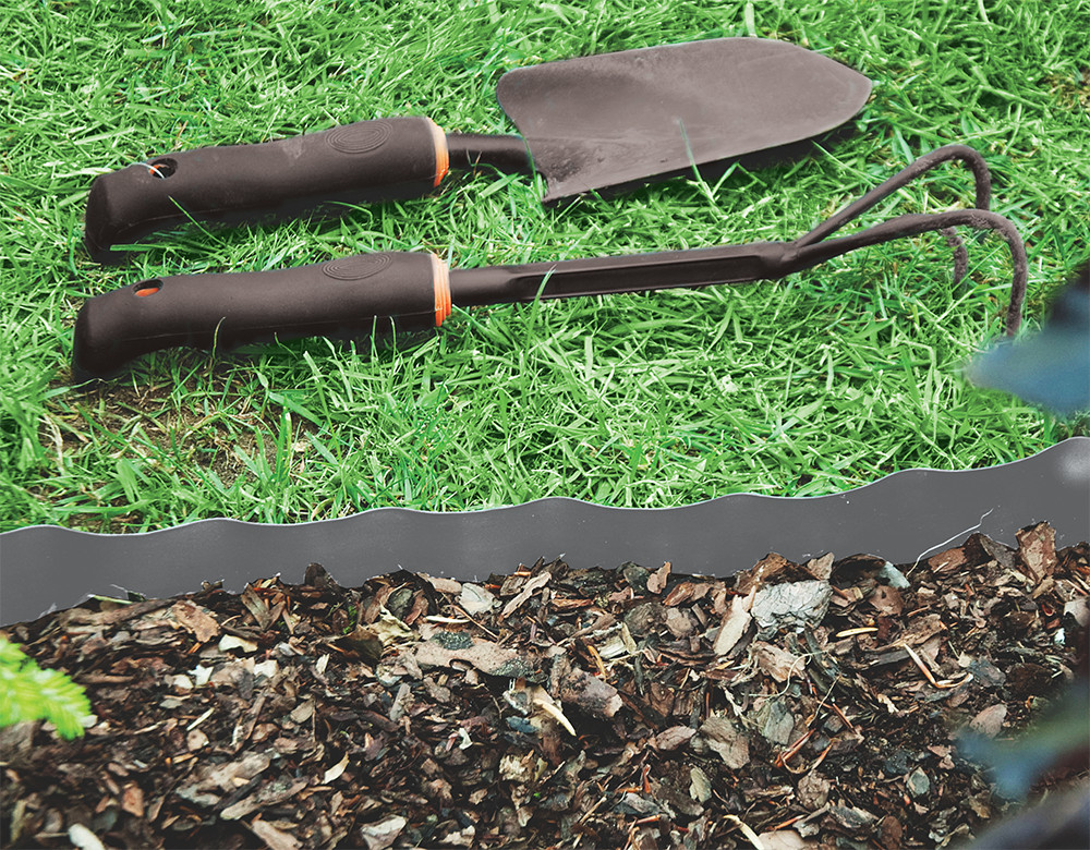 Szürke, műanyag gyep- és ágyásszegély mely alkalmas a gyep, növények, utak, parkok és kertek határának elszigetelésére.
