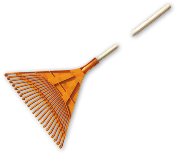 Kiváló minőségű műanyagból készült 22 fogas lombseprű. A fej menetes véggel rendelkezik a fa nyél biztonságos rögzítéséhez. Levelek és fű gereblyézésére alkalmazható.