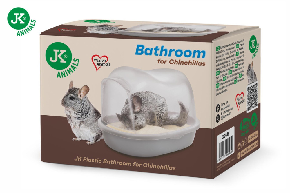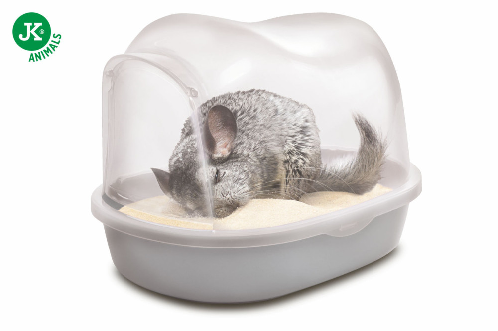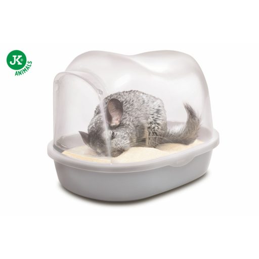 JK Animals fedett csincsilla fürdő edény. Ideális kiegészítő csincsilla ketrecekbe, kiskedvencünk kényelmesen tudja intézni benne a számára szükséges rendszeres homokfürdőzést anélkül, hogy a homokot a ketrecbe kiszórná. Az edénybe a billenőajtón keresztül a csincsilla könnyedén juthat be. Mindig gondoskodj a fürdetőhomok rendszeres tisztításáról, cseréjéről.