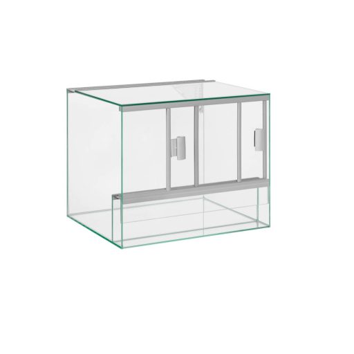 - üveg terrárium tolóajtóval, hátsó kivezetőnyílással a vezetékek számára, dupla szellőzőrács