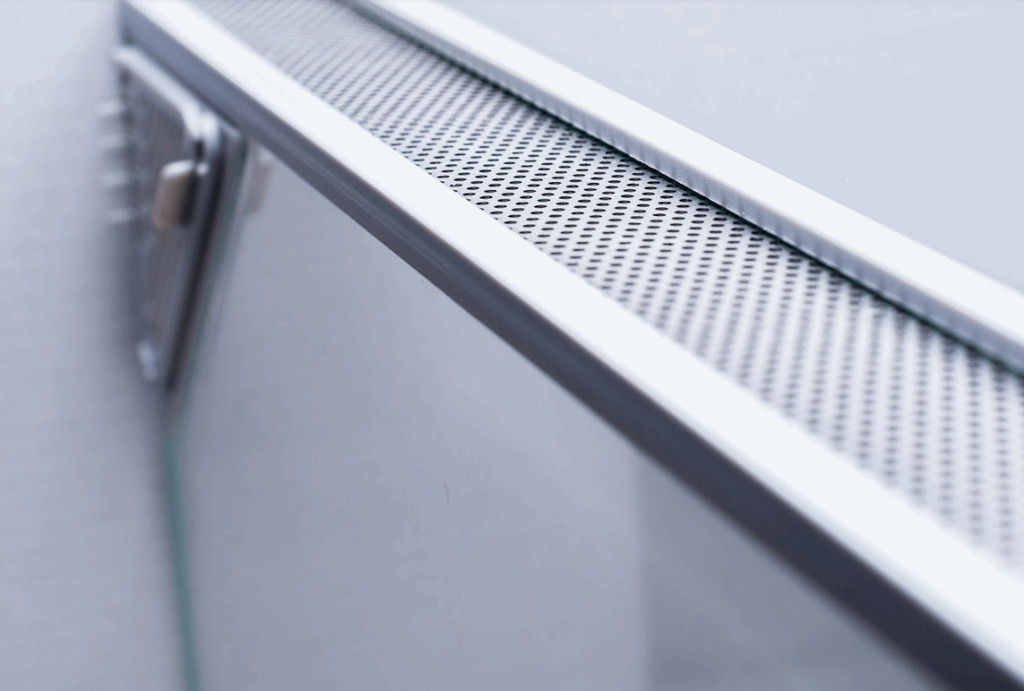 - üveg terrárium tolóajtóval, hátsó kivezetőnyílással a vezetékek számára, dupla szellőzőrács