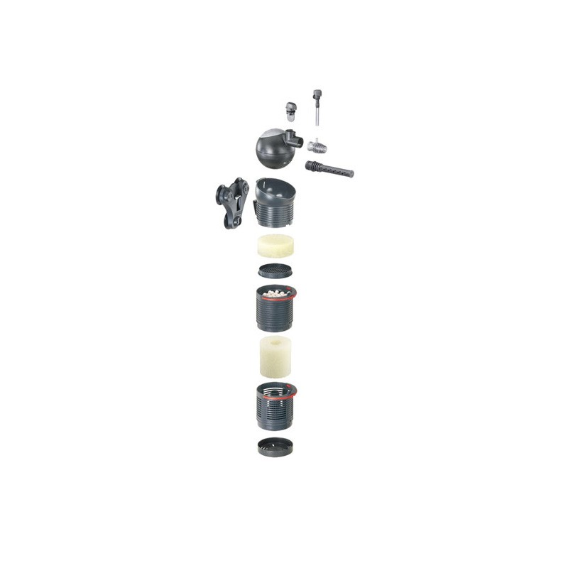 A fő különbség, hogy az elszívás csak az alsó szűrőkosáron keresztül történik, amelyben a szűrőszivacs elvégzi a mechanikai szűrést. A fentebbi kosarak oldalról zártak, így csak a lebegő szennyeződésektől mentes víz kerül ezekbe, ahol a kiváló minőségű EHEIM SUBSTRATpro szűrőanyag végzi a biológiai tisztítást.