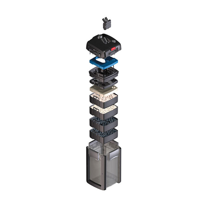 A könnyen kivehető előszűrő lehetővé teszi a durva szennyeződések eltávolítását a fő, biológiai szűrő megbolygatása nélkül. Ezzel a tulajdonságával kiemelkedően hosszú időtartamot biztosít a tisztítások között.