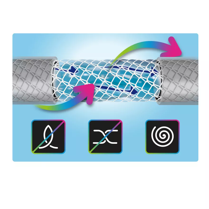 világoskék belső réteg, fekete algásodásgátló réteg, világoskék középső réteg, NTS háló tartás erősítő réteg, átlátszó külső réteg, SKY TECH fólia réteg speciális UV-álló formulával.