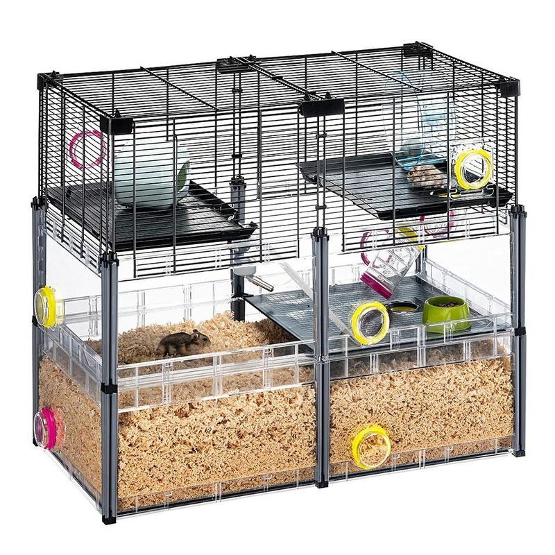 A hörcsögöknek és egereknek szentelt Multipla Hamster ketrecek kényelmes és testreszabási lehetőségek széles skálájával felszerelt életteret kínálnak. Valójában a sorozathoz tartozó összes ketrec teljesen moduláris, és a kedvenced igényeihez igazodik. A kiegészítő bővítő készleteknek köszönhetően dönthetsz úgy, hogy tetszés szerint növeled a lakóteret a legmegfelelőbb konfigurációval.