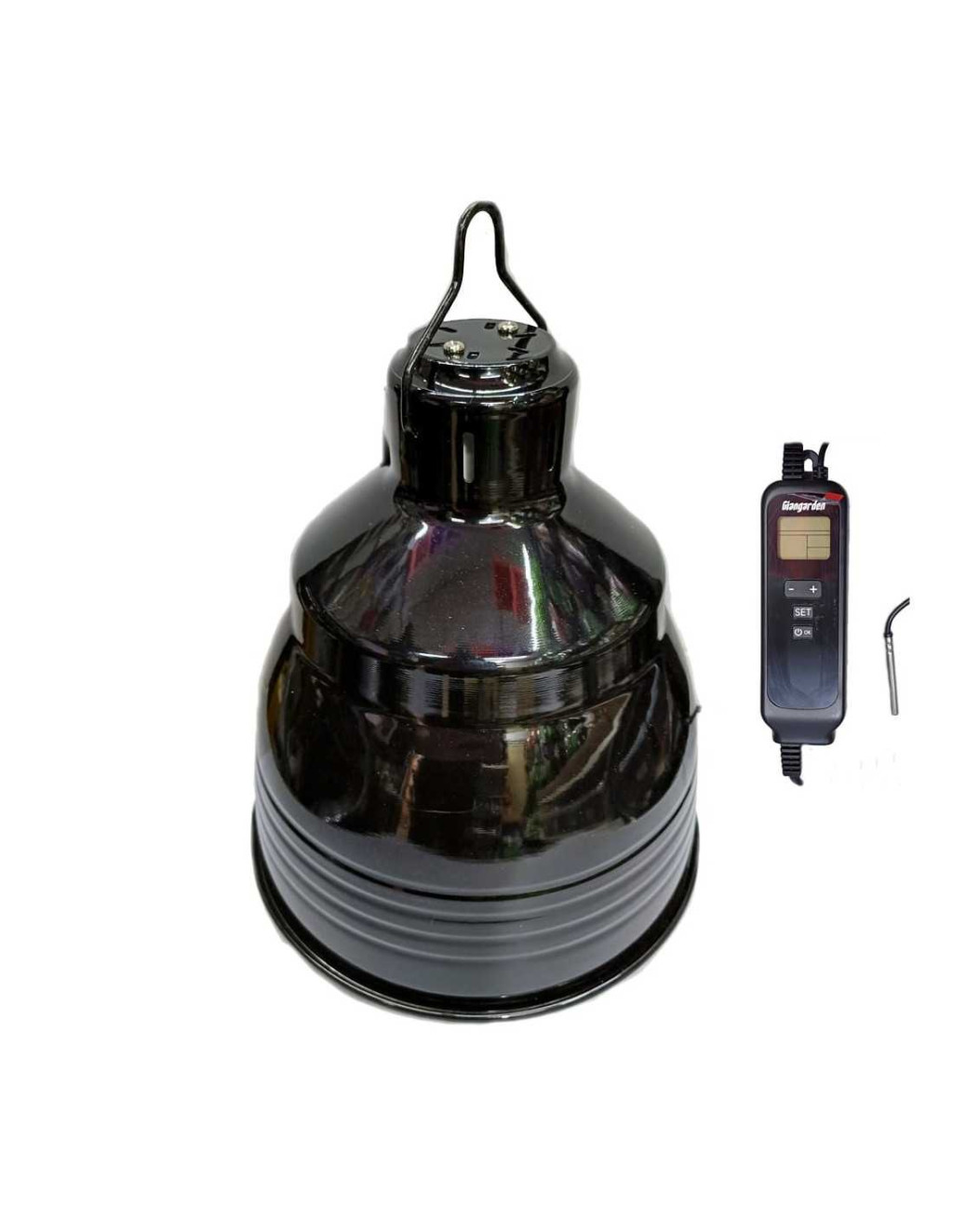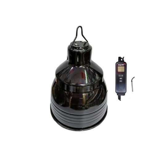 Giangarden terráriumi lámpabura kerámia izzófoglalattal. Minőségi alumínium szoknyájának fényvisszaverő belseje nem csak a fényerősséget maximalizálja, de az UVB sugárzást is növeli akár 80%-kal. A kerámia foglalat ellenáll a hőhatásnak, amit a bura tetején kialakított szellőzés is csökkent. Fém akasztóval ellátott, így rugalmasabb elhelyezés biztosított. Digitális vezérlővel és hőérzékelő szondával felszerelt, így az általunk beállított időszakban a hozzá megadott hőmérséklet eléréséhez szükséges fényerővel világít. A vezeték hosszúsága 180cm. A lámpabura teljes méretei 22*22cm, a foglalat max. 200W teljesítményű E27 izzó működtetésére képes. Mindig ellenőrizd a használni tervezett izzó leírásában, hogy az alkalmas-e fényerőszabályozásra.