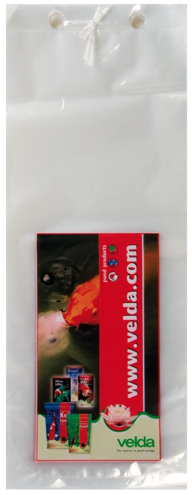 - A Velda halszállító zsákok masszívak és nyomtatott utasításokkal rendelkeznek a halak felelős szállításához és kiengedéséhez.