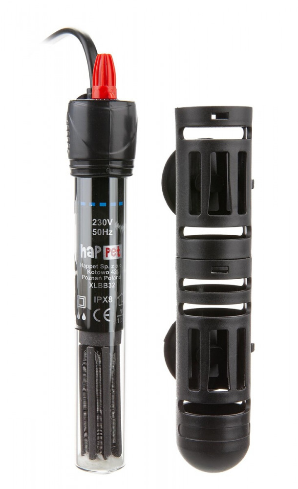 Happet AquaT Mini automata akvárium fűtő védőtokkal. Precíz bimetál érzékelővel ellátott akvárium fűtő. A beállított értéken tartja az akváriumvíz hőmérsékletét. Könnyen beállítható a kívánt hőfok 17 és 35°C között, a jól látható skála segítségével. Teljesen vízálló, biztonságos eszköz. Védőtokja megvédi a kisebb külső ütésektől, így teknősös akváriumban is alkalmazható. Teljesítménye 25W; 10-25 liter víz melegítéséhez ajánlott; teljes hossza 19cm.