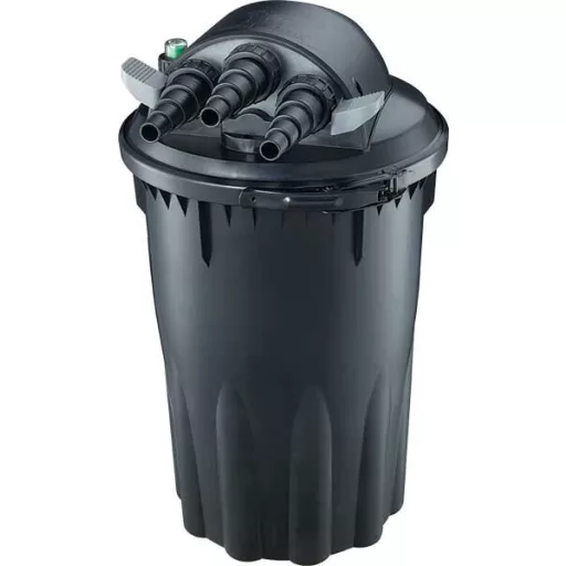 A Happet BIOpress nyomásszűrő hatékony és megbízható megoldást kínál a kerti tavak vízminőségének fenntartására. A hermetikusan zárt, nyomásálló kialakítás stabil működést biztosít, miközben lehetővé teszi, hogy a szűrt vizet akár csobogóhoz vagy vízeséshez is továbbvezesd.