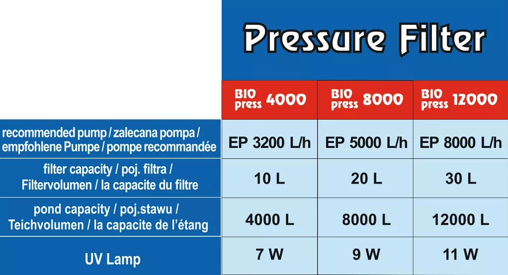 • Ajánlott tó méret (koi pontyokkal): max. 1 000 liter