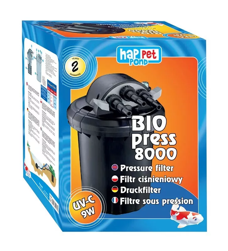 A Happet BIOpress nyomásszűrő hatékony és megbízható megoldást kínál a kerti tavak vízminőségének fenntartására. A hermetikusan zárt, nyomásálló kialakítás stabil működést biztosít, miközben lehetővé teszi, hogy a szűrt vizet akár csobogóhoz vagy vízeséshez is továbbvezesd.