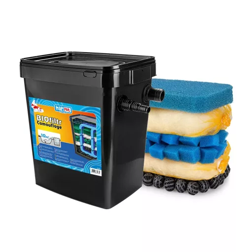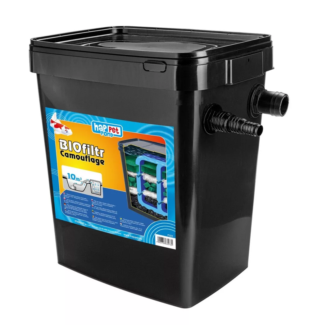 A Happet BIOFilter Camouflage kerti tó szűrő praktikus és diszkrét megoldást kínál a kerti tavak vízének tisztítására. A nagy kapacitású, doboz alakú átfolyó szűrő a vízpumpa által átáramoltatott vizet mechanikai és biológiai módon tisztítja, így segít fenntartani a tiszta és egészséges tóvizet.
