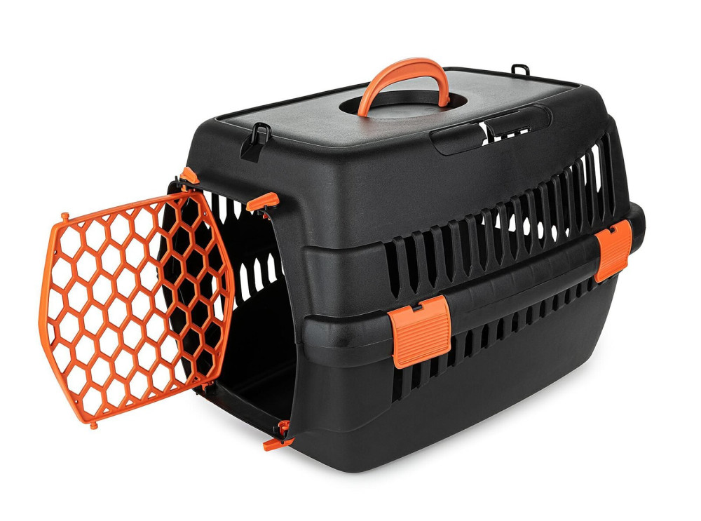 A Happet Teddy S kisállat szállító box, strapabíró, biztonságos műanyagból készült szállító doboz kisebb kutyák, valamint macskák vagy nagyobb rágcsálók szállításához. Ideális megoldás, ha kiskedvencünket állatorvoshoz kell szállítani, vagy hosszabb útra visszük magunkkal. Kényelmes markolatú fogantyújával könnyen cipelhető, tetején vállpánt felcsatolására alkalmas akasztók találhatók (vállpántot a termék NEM tartalmaz). Autóban biztonsági övvel rögzíthető. Ideális szellőzést biztosít a rácsos oldalfalaknak és az ajtónak köszönhetően, ez utóbbi könnyen nyitható bármelyik irányba, vagy teljesen is leszedhető. Erős rögzítő pántjai stabilan összetartják a doboz alsó és felső felét, viszont szükség esetén lehetővé teszik a könnyű szétszedést. Teljes méretei 50*33*33 cm.