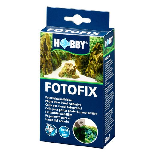 Hobby Fotofix háttér poszter ragasztó. Buborék- és tükröződés mentesen, sötét részek nélkül felragaszthatunk vele műanyag háttér fóliát akváriumra vagy terráriumra. A ragasztóanyag később nyomtalanul eltávolítható. Nem alkalmas matt felületű, 3D-s, vagy papírból készült fóliákhoz. Egy csomag 50 ml ragasztót és egy műanyag simítót tartalmaz, egy négyzetméternyi felülethez elegendő.