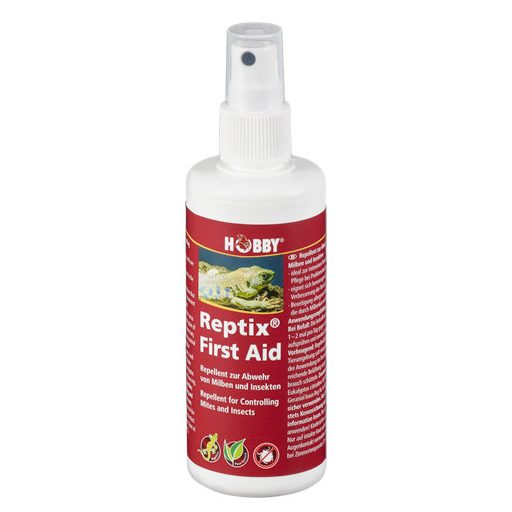 Hobby Reptix First Aid atka- és féregriasztó spray terráriumi állatokhoz. Permetező szuszpenzió atkák, kullancsok és egyéb kis élősködők ellen. Az atkák és más kis paraziták okozta bőrproblémák gyakoriak fiatal és idősebb házi kedvenceknél. A gyenge immunrendszer, vedlés és/vagy anyagcsere-problémák is kiváltó okok lehetnek. A Hobby Reptix First Aid elriasztja ezeket az élősködőket anélkül, hogy a szervezetet szintetikus toxinokkal terhelné. A citrom eukaliptusz levélből kivont hatóanyag az állat bőréhez tapad. Illata elriasztja az atkákat, így megelőzi a parazitafertőzést.