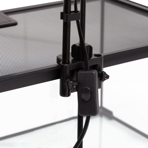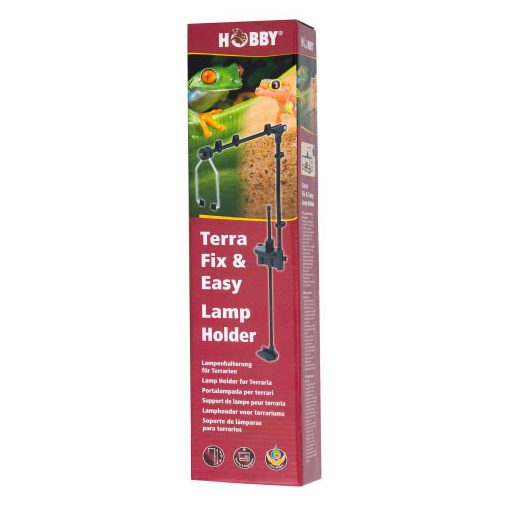 Hobby terráriumi lámpatartó állvány. Elsősorban a márka Terra Fix & Easy terrárium és világítás termékcsaládjához tervezve, de kompatibilis a legtöbb terráriummal és lámpatesttel. Fém konstrukciója által nagyon masszív és stabil. Gumi elemei megakadályozzák, hogy az elektromosság áthúzzon a fémszerkezeten, így teljesen biztonságos is. Állítható magassága által bármilyen magasságú terráriumhoz használható 30-tól 60cm-ig, a csomagban foglalt toldórúd által mélyebb terráriumhoz is használható. Kábelrögzítő csipeszei által szépen elvezethetjük a világítás vezetékét.