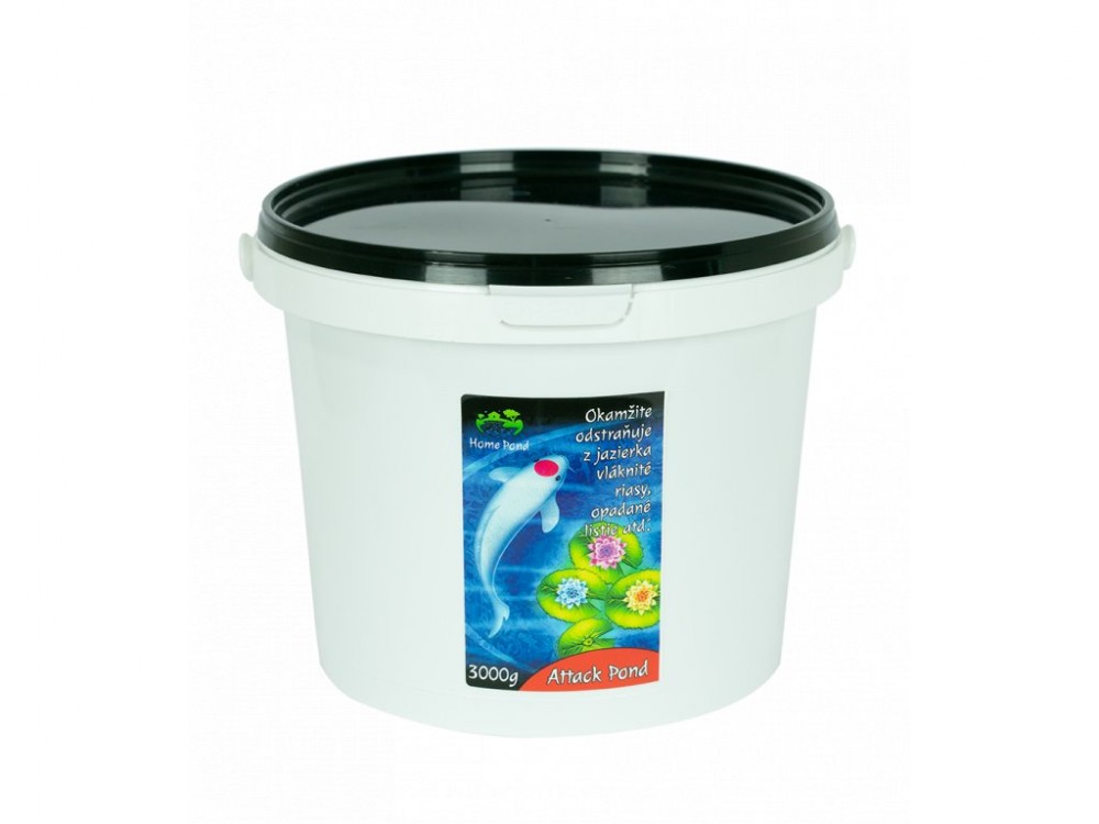 Hatás: Az ATTACK POND az kijuttatás után nagyon gyorsan hat. A készítmény a fonalas algákkal, rothadó levelekkel, egyéb elhalt vízi növényekkel és más szennyeződésekkel érintkezve oxigént szabadít fel, mely a szennyeződést a víz színére emeli fel. A szennyeződéseket az felszínszűrő (skimmer) fogja fel, vagy hálóval is ki lehet szedni. A felszabaduló oxigén támogatja a lerakódások oxidálódással történő bomlását, a nyári hónapokban csökkenti az oxigénhiány kockázatát a halaknál, hozzájárul a tavak biológiai egyensúlyához. A készítmény hatásának a gyorsasága függ a víz hőmérsékletétől, melegebb vízben gyorsabban hat, mint hideg vízben. A készítmény az összetételének megfelelő anyagokra bomlik szét (oxigén, víz és karbonát).
