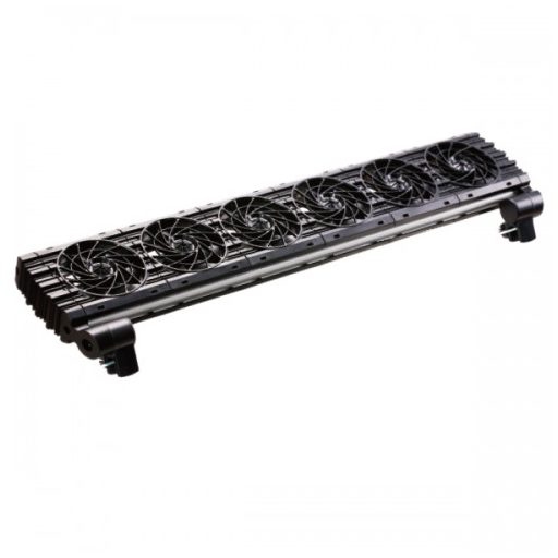 Ista akváriumi hűtő ventilátor sor. Sorba rendezett kialakítása által igény szerint választhatunk típust egytől hat ventilátoros változatig. Ideális kiegészítő hűtést igénylő (pl. tengeri) akváriumokhoz, vagy nagy hőség idején. Az akvárium méretétől, az alap körülményektől, és a ventilátorok számától függően akár 3-5°C-szal is csökkentheti az akvárium víz hőmérsékletét. Könnyen felszerelhető, a légáramlás iránya 90°-ban állítható. Alumíniumötvözet kerete tartós, míg DC 12V-os elektromos adaptere biztonságos üzemelést biztosít - áramerősség 0,9A.