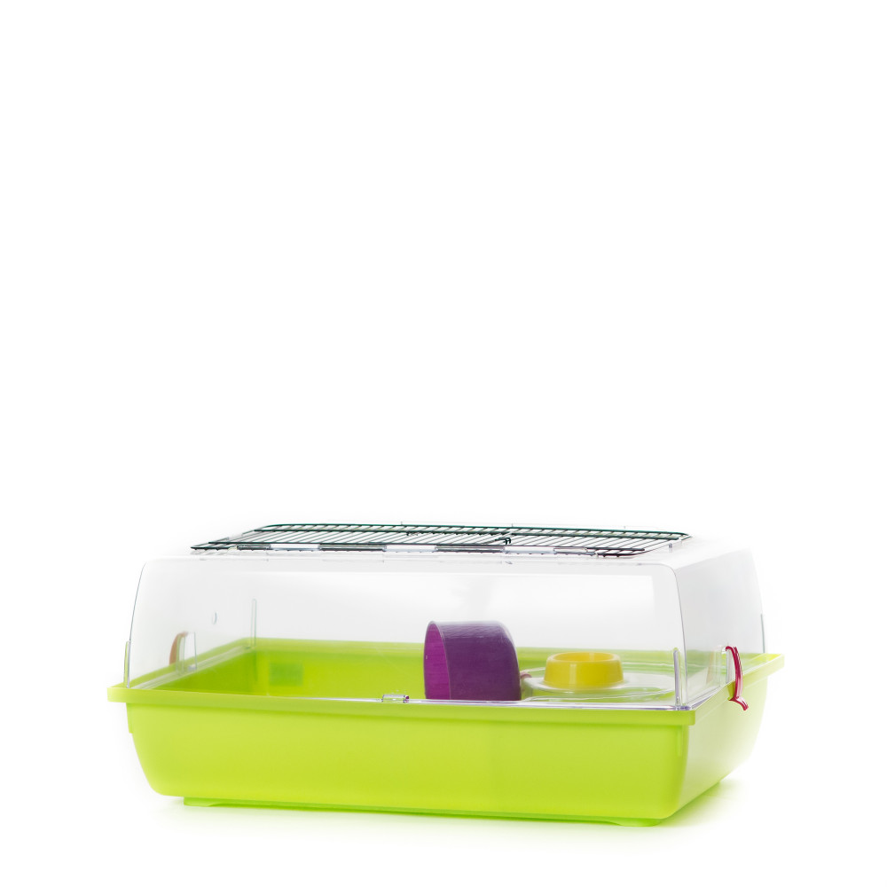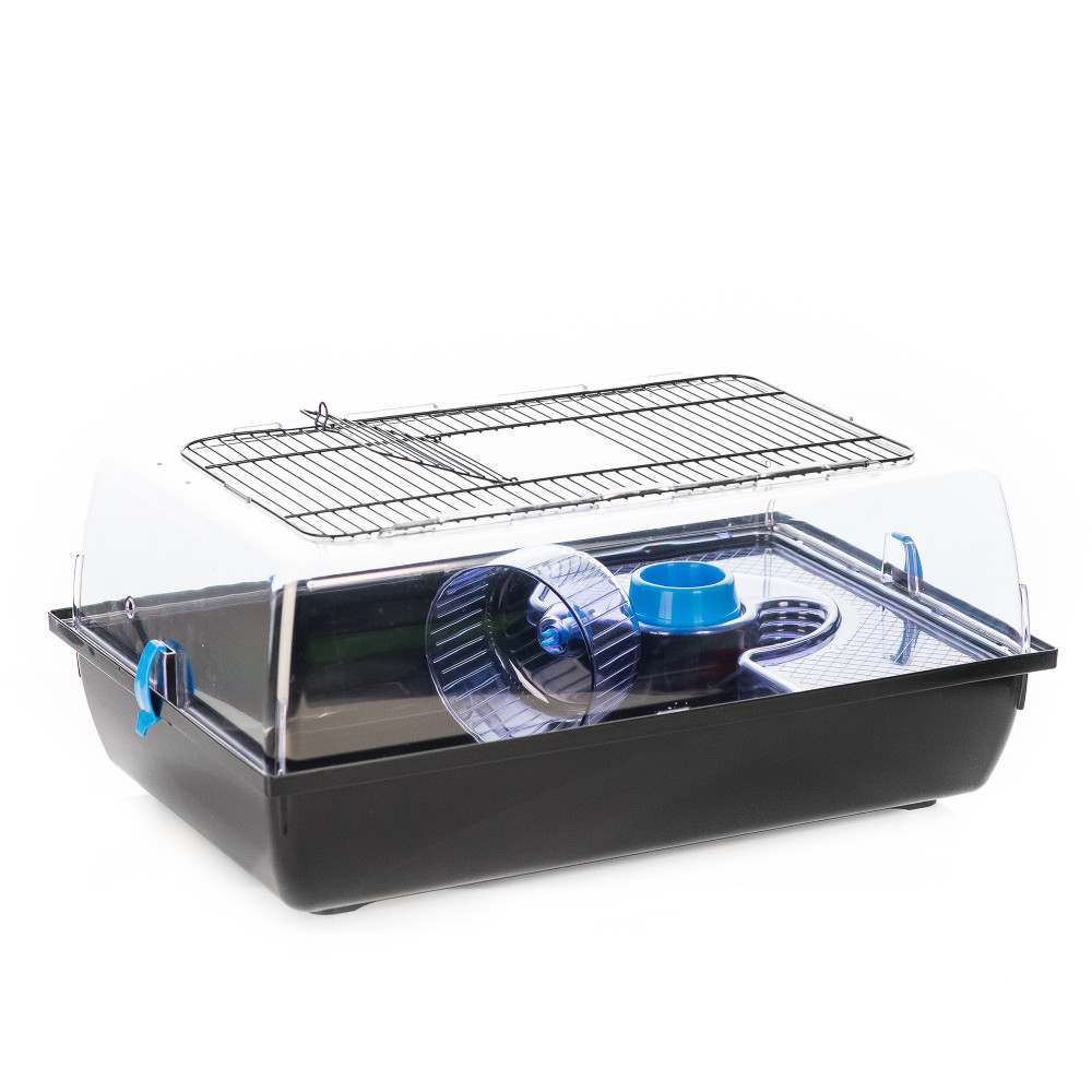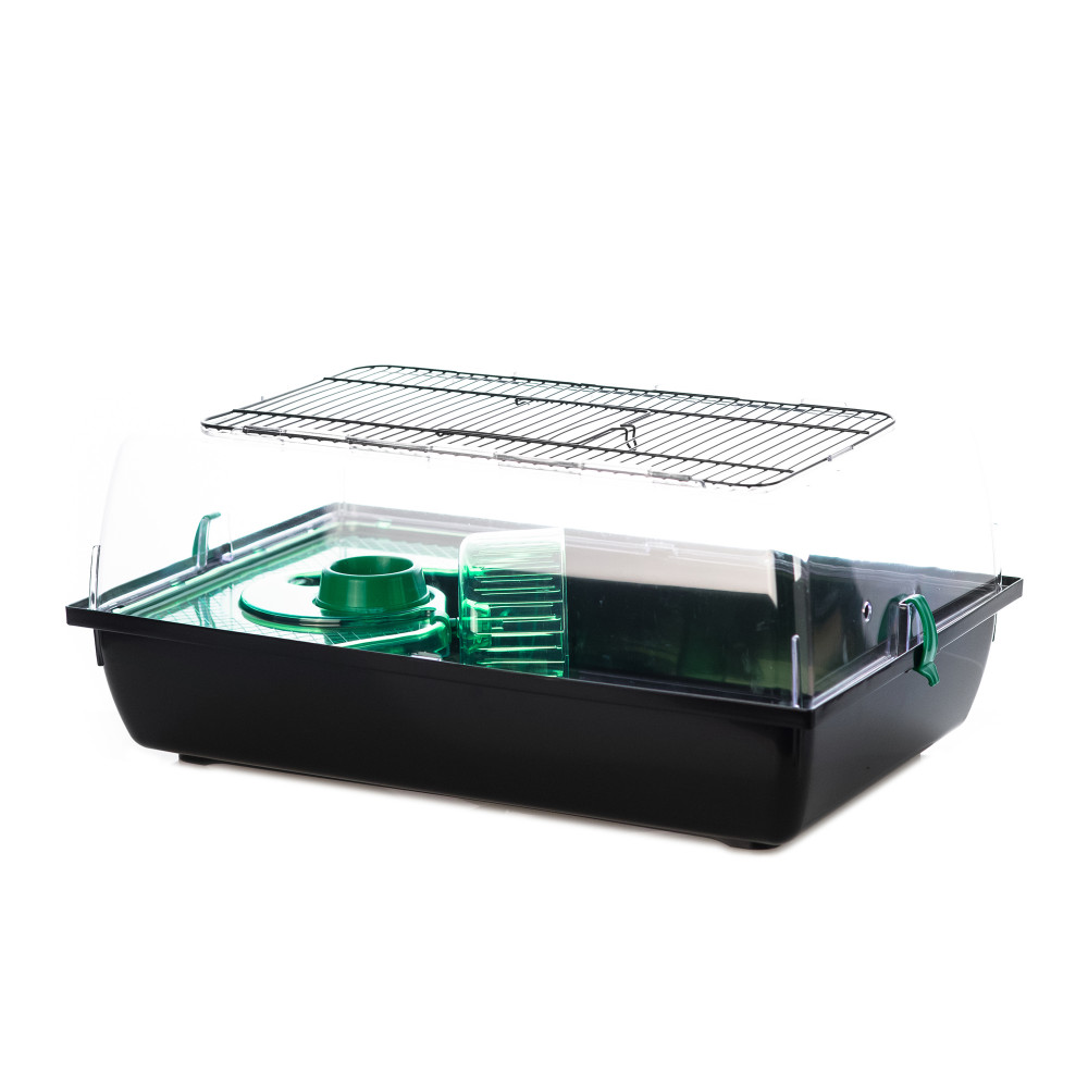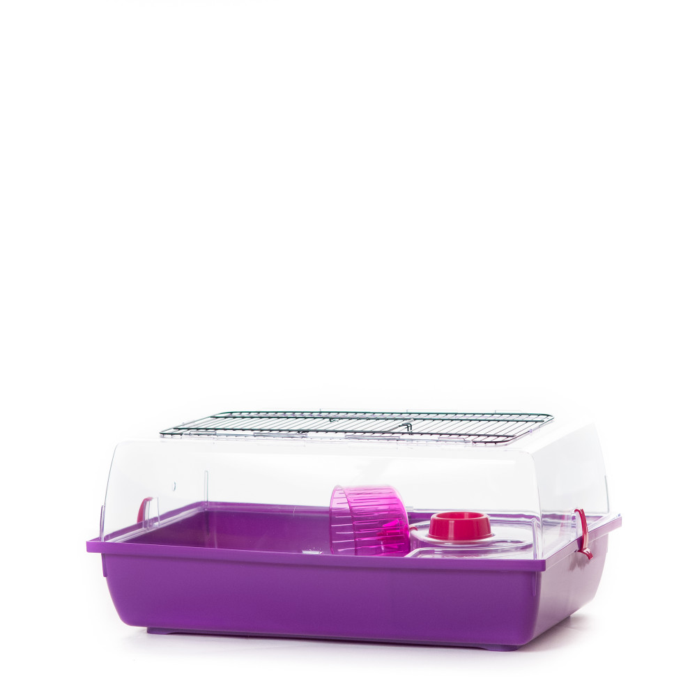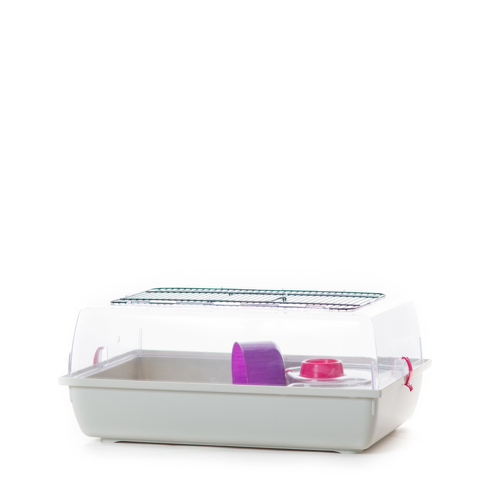 Inter-Zoo Alex + Terrace plexi tetős hörcsög ketrec. Szinte teljesen zárt rágcsáló ketrec, ideális hörcsög vagy más kis rágcsáló tartásához. Az átlátszó plexi fedél megakadályozza az alom kiszórását, így a ketrec környéke tiszta marad. Ráadásul teljes belátást is biztosít. Futókerék, felmászó, búvóhely és műanyag tálka gondoskodnak a maximális komfortérzetről. Dizájnos kialakítás, bármilyen helyiségbe jól illik. Tetején ajtóval a könnyű hozzáféréshez.