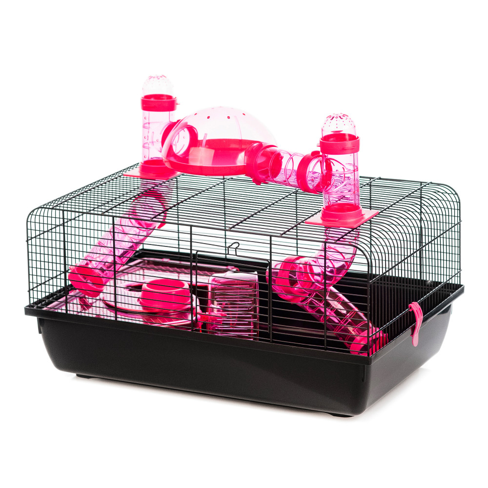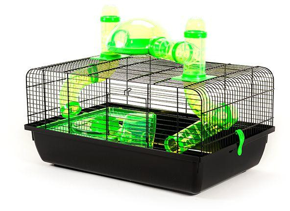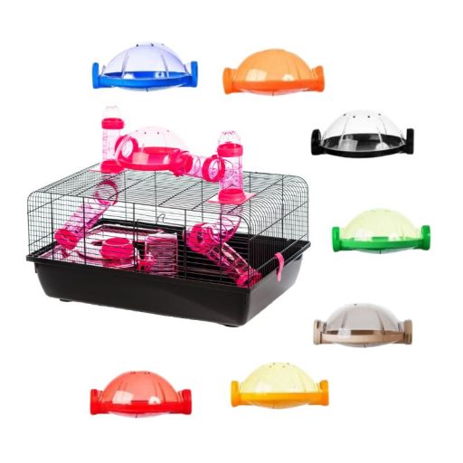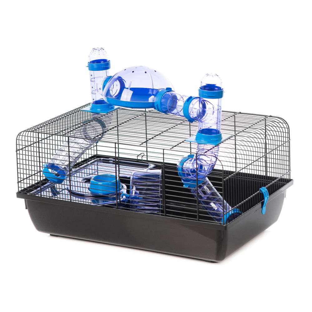 Inter-Zoo Astro + Terrace hörcsög és egér ketrec. Látványos formatervezésű rágcsáló ketrec főként hörcsögök és kis rágcsálók tartásához. A külső kupolás csőrendszer és a futókerék kielégítik a kisállatok mozgásigényét. A ketrecből kijövő kupolás csőrendszer látványos módon növeli a mozgásteret, és külön vásárolható elemekkel tovább bővíthető. Az akril terasz nem csak mutatós, de búvóhelyként is szolgál, tovább fokozva a komfortérzetet. A látványos színösszeállítások modern, dekoratív külalakot kölcsönöznek a ketrecnek. Etető-itató tálkával felszerelt.