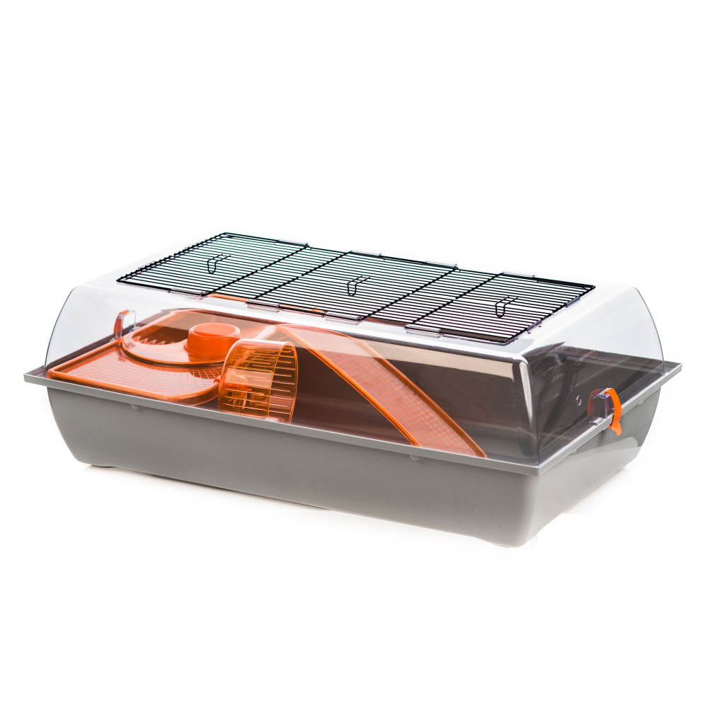 Inter-Zoo Big Alex plexi tetős hörcsög ketrec. Szinte teljesen zárt rágcsáló ketrec, ideális hörcsög vagy más kis rágcsáló tartásához. Az átlátszó plexi fedél megakadályozza az alom kiszórását, így a ketrec környéke tiszta marad. Ráadásul teljes belátást is biztosít. Futókerék, felmászó, búvóhely és műanyag tálka gondoskodnak a maximális komfortérzetről. Dizájnos kialakítás, bármilyen helyiségbe jól illik. Tetején több ajtóval a könnyű hozzáféréshez.