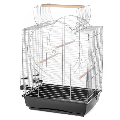 Inter-Zoo Emma Open Zink madárkalitka, nagy életteret biztosít kis és közepes díszmadarak tartásához. Modern külalakja és színben hozzá illő alapja kellemes látványt nyújtanak. Ülőrudakkal és etetővel/itatóval felszerelt, oldalsó ajtajára Inter-Zoo madárfürdető is illeszthető. Kivehető tálcája könnyen tisztítható. Teteje kinyitható, és a nyílásba ülőrúd helyezhető, így a madarak kiülhetnek rá.