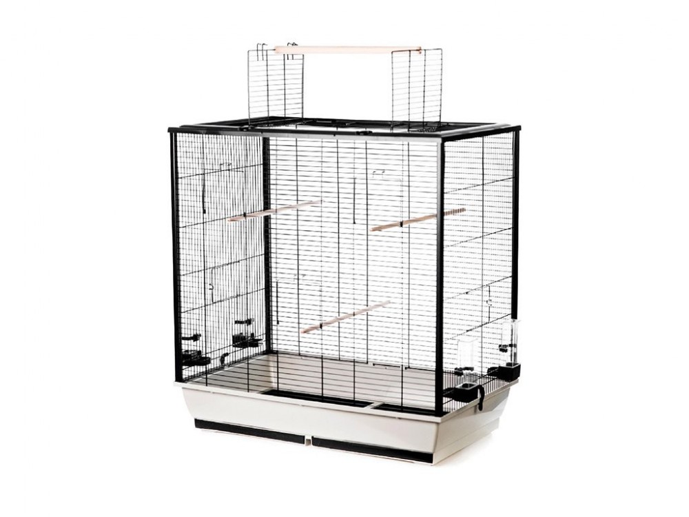 Inter-Zoo Fiona Open összecsukható madárkalitka, mely nagy életteret nyújt a pintyek, papagájok és más díszmadárfélék számára. Elülső és oldalsó ajtajain kívül a teteje teljes egészében felnyitható, így könnyen hozzáférhetünk a ketrec belsejéhez. Alsó tálcái kihúzhatók, így könnyen takaríthatók. A tetőn külön felnyitható ajtó található, amelynek szárnyai közé ülőrúd helyezhető, hogy madárkáink a kalitka tetejére kiülhessenek. Ülőrudakkal és etető-itató edényekkel felszerelt. Az oldalsó ajtókba az Inter-Zoo műanyag madárfürdetői is elhelyezhetők. A kellemes, nem rikító színösszeállítása által bármilyen helyiségbe jól illik. Az összecsukható szerkezet lényege, hogy az egyes rácsfalak különállóak, műanyag sarokelemek fogják őket össze. Szétszerelve könnyen szállítható és tárolható.