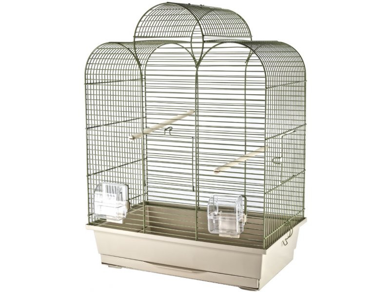 Inter-Zoo Iza I Natural madárkalitka, kellően nagy életteret biztosít kis termetű díszmadarak számára. Elegáns formája és színben hozzá illő alapja kellemes látványt nyújtanak. A kalitka természetes zöldes színárnyalata jól illeszkedik bármilyen helyiségbe, főleg szobanövények közelében/mellett mutat igazán. Ülőrudakkal és etetővel/itatóval felszerelt, oldalsó ajtajára Inter-Zoo madárfürdető is illeszthető. Kivehető tálcája könnyen tisztítható.