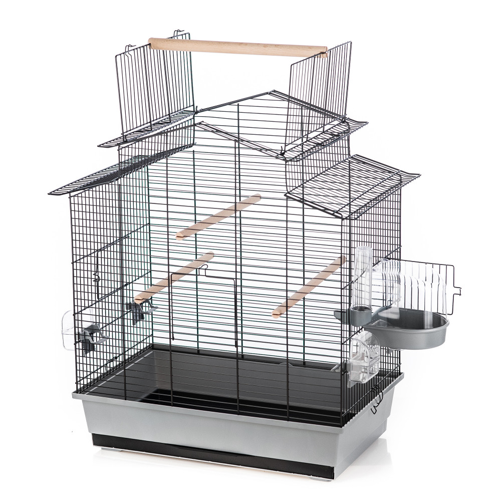 Inter-Zoo Iza III Open madárkalitka, nagy életteret biztosít kis és közepes díszmadarak tartásához. Modern külalakja és színben hozzá illő alapja kellemes látványt nyújtanak. Ülőrudakkal és etetővel/itatóval felszerelt, oldalsó ajtajára Inter-Zoo madárfürdető is illeszthető (tartozék). Kivehető tálcája könnyen tisztítható. Teteje kinyitható, és a nyílásba ülőrúd helyezhető, így a madarak kiülhetnek rá.