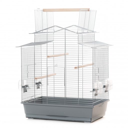Inter-Zoo Iza III Zink madárkalitka, nagy életteret biztosít kis és közepes díszmadarak tartásához. Modern külalakja és színben hozzá illő alapja kellemes látványt nyújtanak. Ülőrudakkal és etetővel/itatóval felszerelt, oldalsó ajtajára Inter-Zoo madárfürdető is illeszthető. Kivehető tálcája könnyen tisztítható. Teteje kinyitható, és a nyílásba ülőrúd helyezhető, így a madarak kiülhetnek rá.