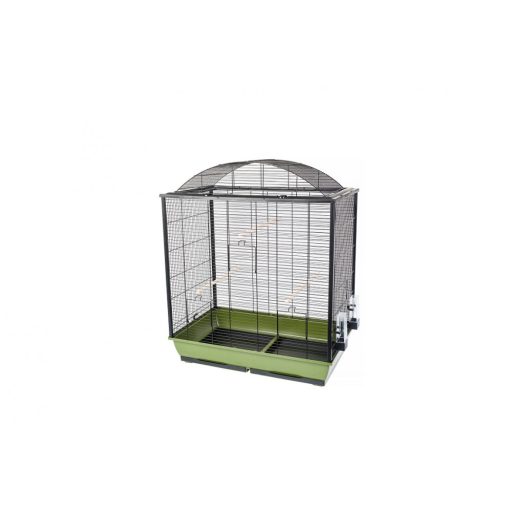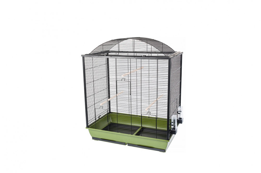 Inter-Zoo Nicola összecsukható madárkalitka, mely nagy életteret nyújt a pintyek, papagájok és más díszmadárfélék számára. Elülső és oldalsó ajtajain kívül a teteje teljes egészében felnyitható, így könnyen hozzáférhetünk a ketrec belsejéhez. Alsó tálcái kihúzhatók, így könnyen takaríthatók. Boltíves teteje külön felnyitható. Ülőrudakkal és etető-itató edényekkel felszerelt. Az oldalsó ajtókba az Inter-Zoo műanyag madárfürdetői is elhelyezhetők. A kellemes, nem rikító színösszeállítása által bármilyen helyiségbe jól illik. Az összecsukható szerkezet lényege, hogy az egyes rácsfalak különállóak, műanyag sarokelemek fogják őket össze. Szétszerelve könnyen szállítható és tárolható.