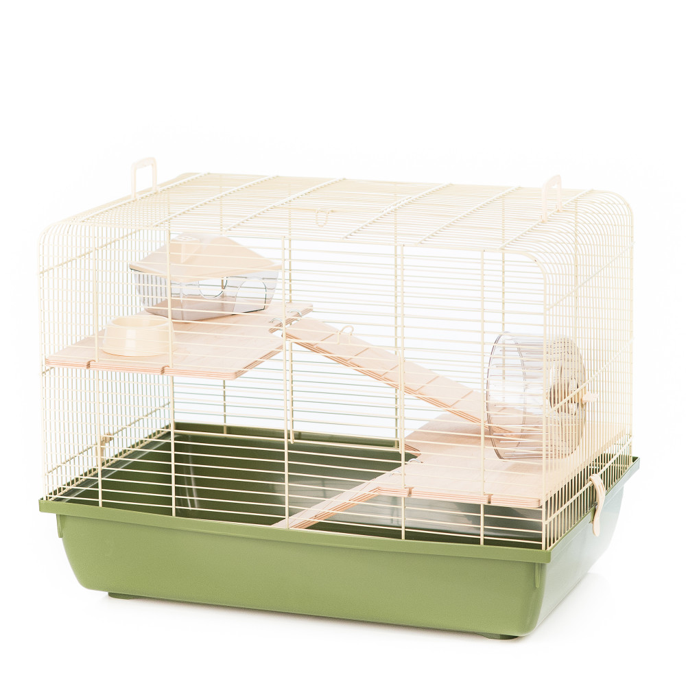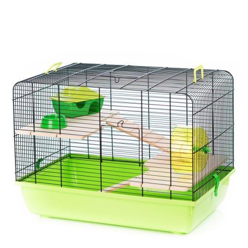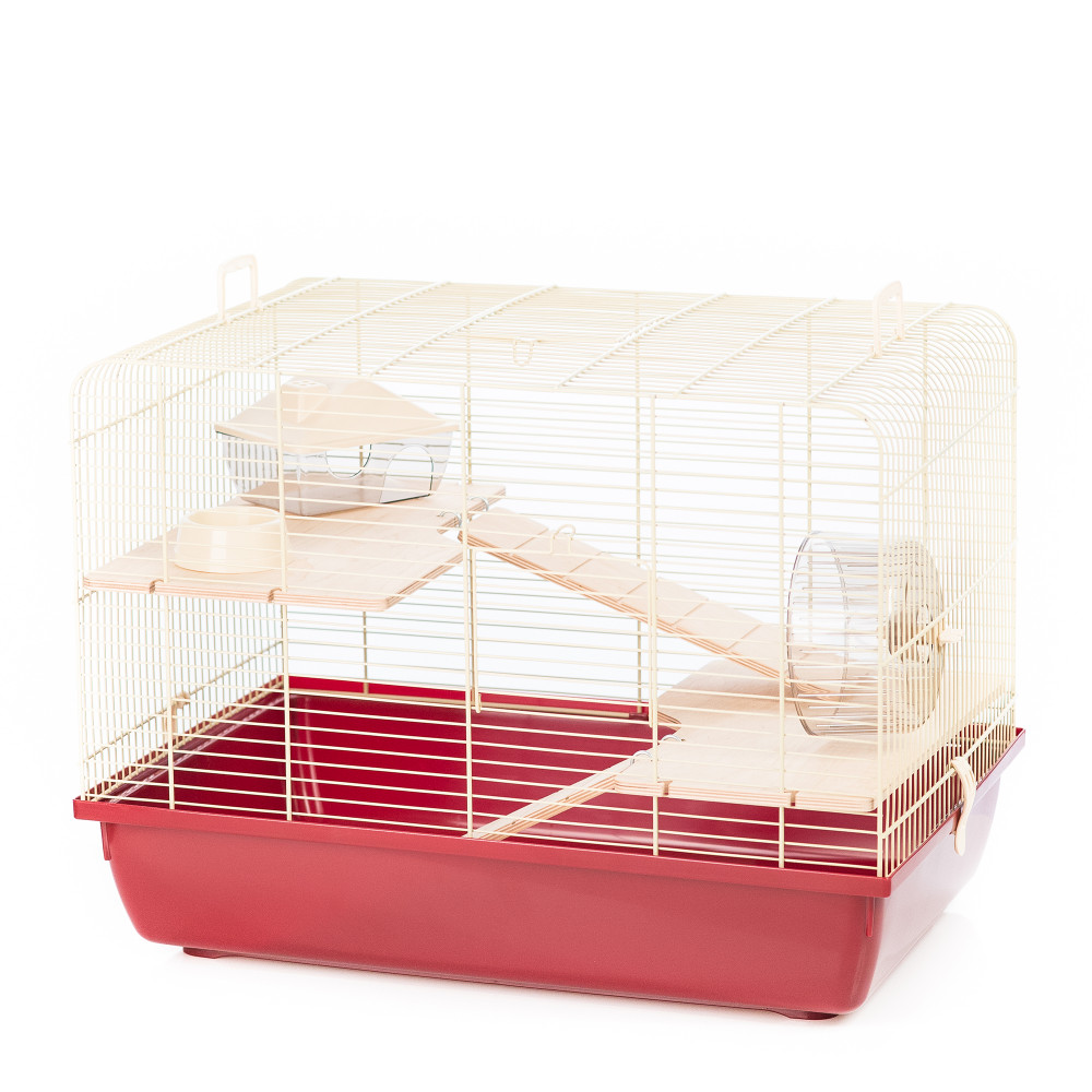 Inter-Zoo Rex 2 Wood hörcsög ketrec. Szögletes alakú, magas rágcsáló ketrec hörcsögök, kis rágcsálók tartásához. Nagy életteret biztosító, falap elemekkel felszerelt. A magas, többszintes belső tér, valamint a futókerék kielégítik akis hörcsögök napi mozgásigényét. A fából készült elemek természetes hatást adnak a kisállatoknak, így növelve a komfortérzetüket. A felszereltséget műanyag házikó és etető-itató tálka. Kellemes, barnás színárnyalatok.