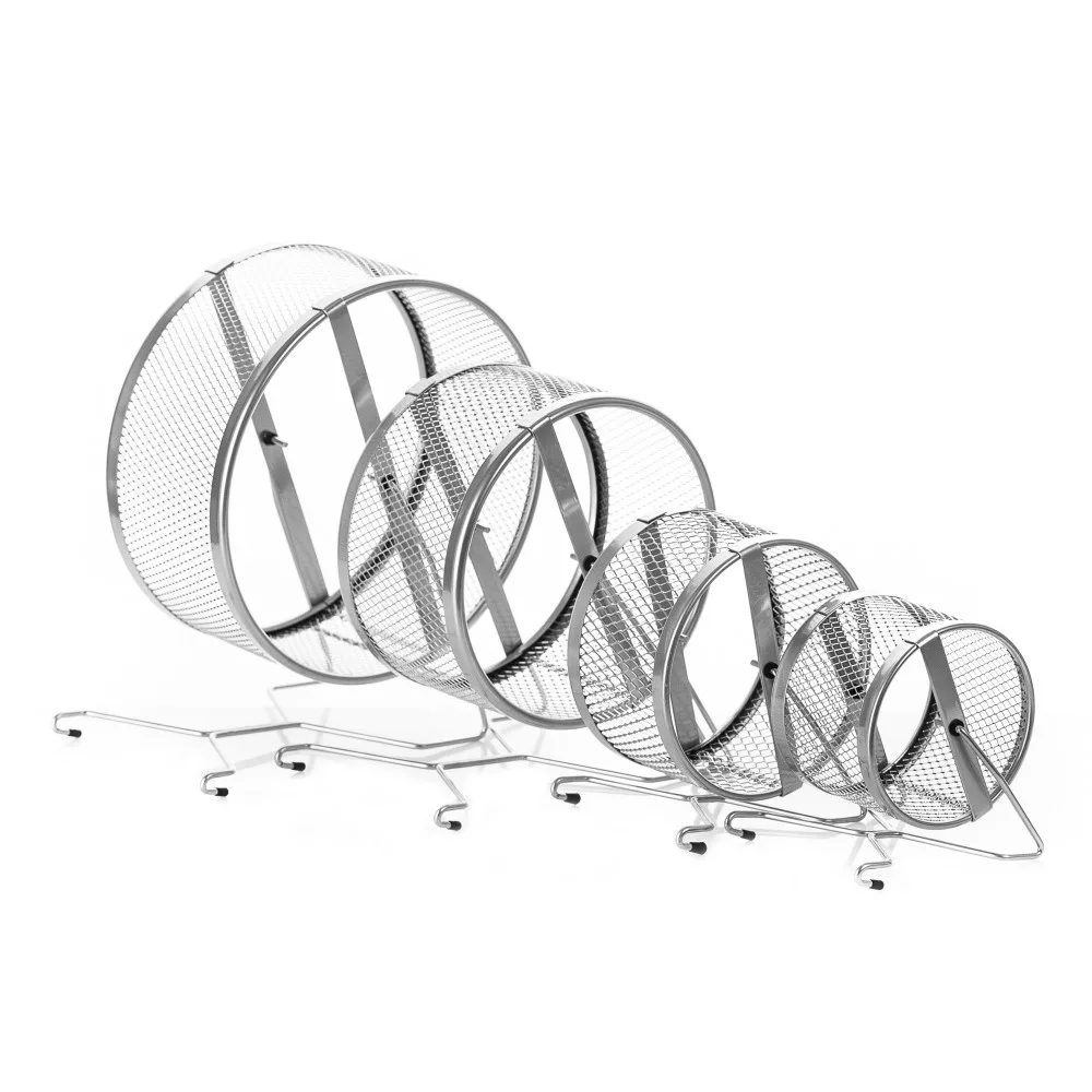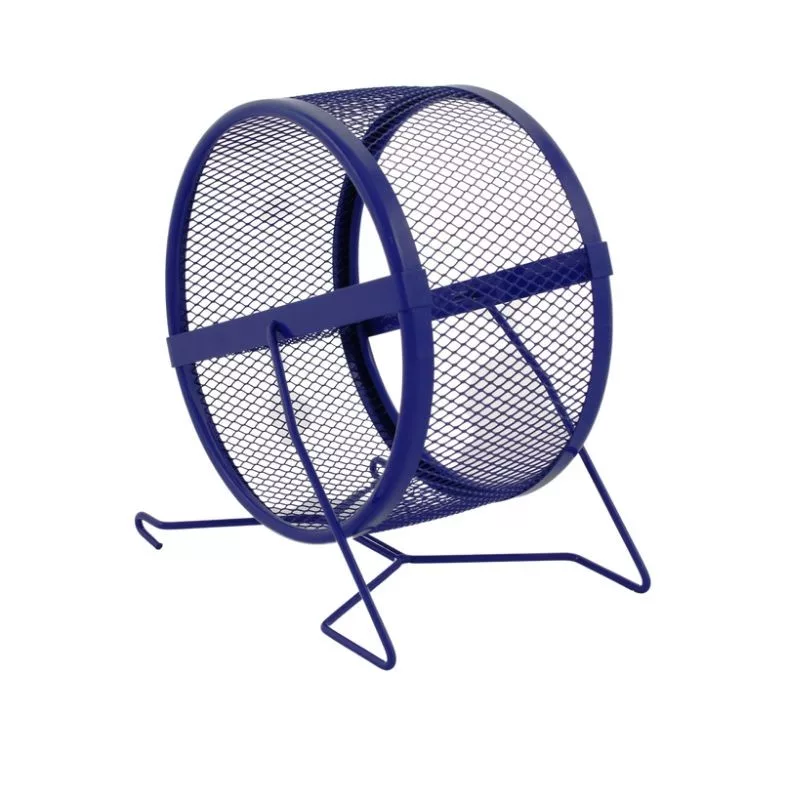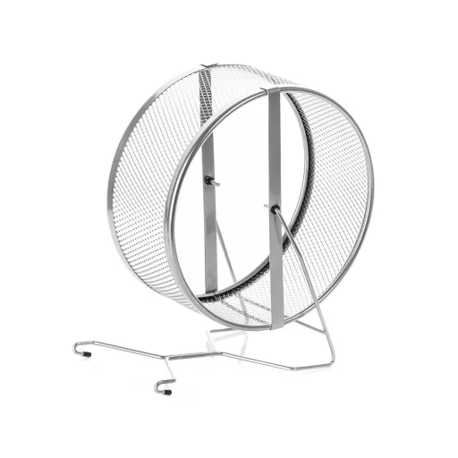 Inter-Zoo sűrű rácsozású fém futókerék rágcsálóknak. Sűrű rácsos szerkezete nem csak dizájnos, de jobb kapaszkodást és stabilabb futófelületet biztosít a kisállat számára, megakadályozza a kis lábak beakadását. A futókerék a lábára állítva vagy a ketrec rácsára akasztva is elhelyezhető. Átmérője 12cm, törpehörcsög vagy egér számára ajánlott.