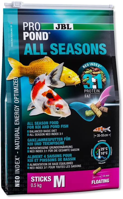 - Magas minőségű, 14 mm-es úszó pellet rúdak egész éven át történő etetéshez 10-25 °C közötti vízhőmérséklet mellett.