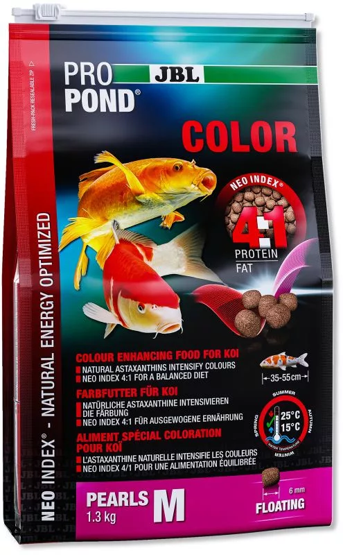 - Magas minőségű, 6 mm-es úszó golyócskák aranyhalak etetéshez 10-25 °C közötti vízhőmérséklet mellett.