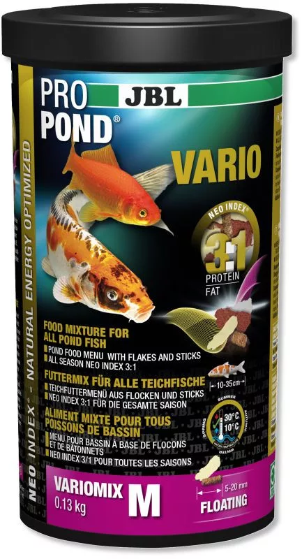 - Magas minőségű, 5-20 mm-es lebegő rudacskák és pelyhek 10-30 °C közötti vízhőmérséklet melletti etetéshez.