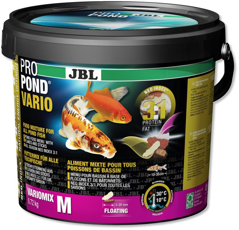 - Magas minőségű, 5-20 mm-es lebegő rudacskák és pelyhek 10-30 °C közötti vízhőmérséklet melletti etetéshez.