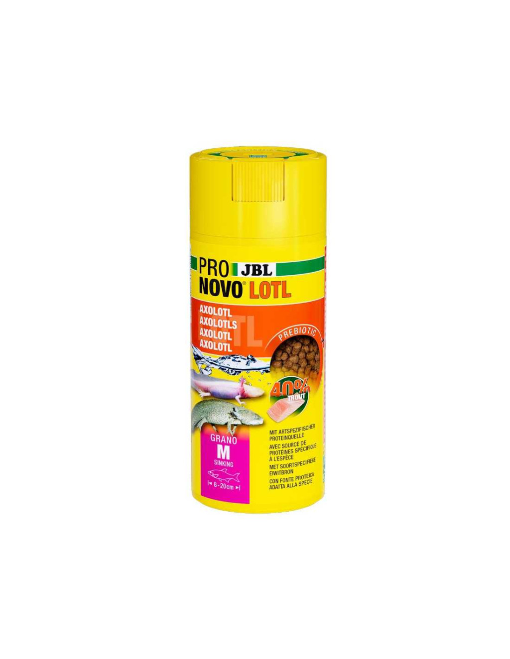 JBL ProNovo Lotl Grano M süllyedő szemcsés eleség Axolotlok, Gőték és Karmos békák számára. Teljes értékű táplálást és optimális növekedést biztosít. Állati eredetű összetevői, mint a ritkán használt édesvízi halhús, felemáslábú rákok és garnélák, a természetes étkezést tükrözik. Válogatott tápanyagai és rostjai a jótékony bélbaktériumok támogatása által egészséges emésztést biztosítanak, ami hozzájárul a vízszenyezés csökkenéséhez. Prebiotikus eleség. Ideális 8-20 cm méretű állatok etetéséhez. Kiszerelés 250 ml.