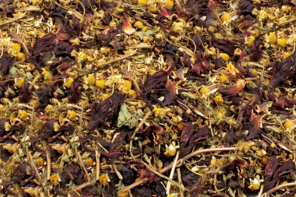 hibiszkuszvirág, csipkebogyó 25%, borsmenta, kamilla, máriatövis 8%, melissa